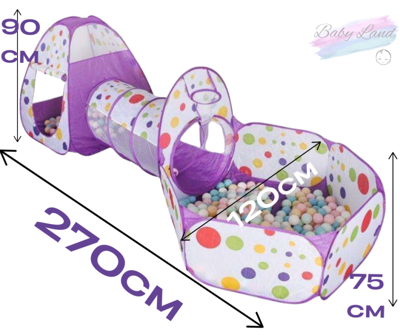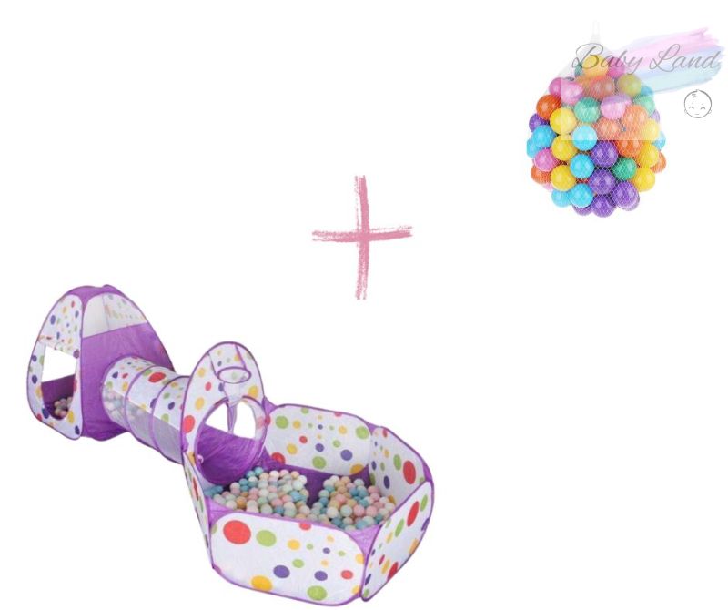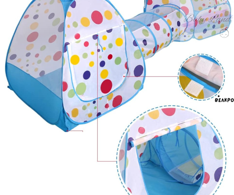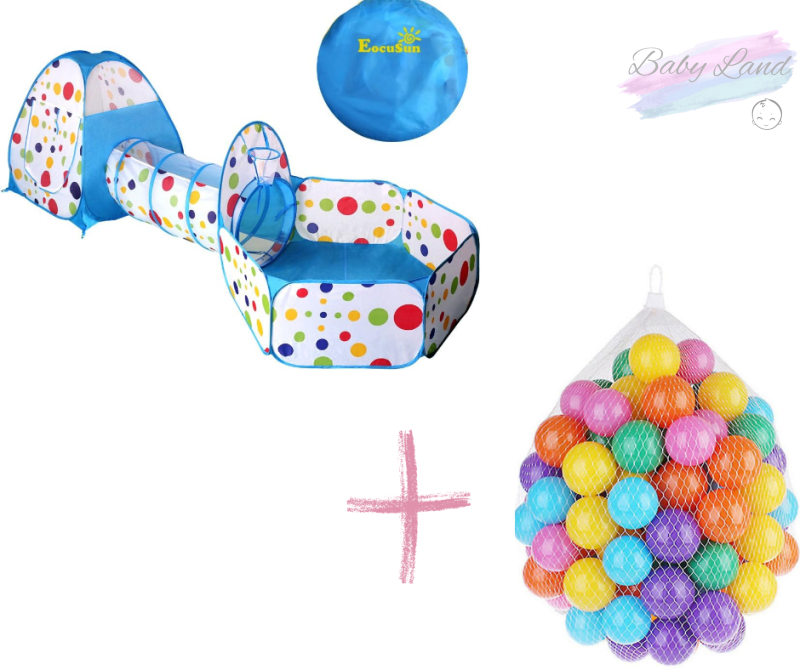 Детска палатка и тента 3в1 с тунел +ПОДАРЪК 50 Цветни Топки – голям комплект за игра, движение и забавление | Просторна палатка, забавен тунел и мини „басейн“ с топки в едно – подходящи за дом, двор, детска стая, партита, пълзене, координация и активна и