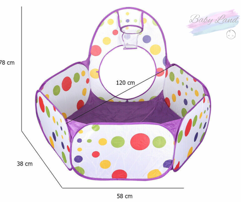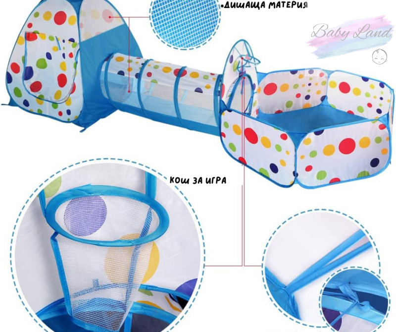 🏰 Детски игрален комплект 3в1 – палатка „Замък“, тунел и басейн с топки + кош за игра